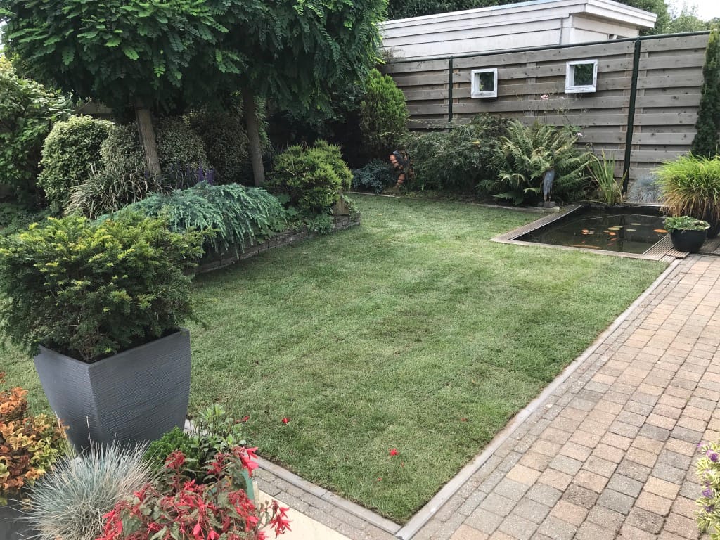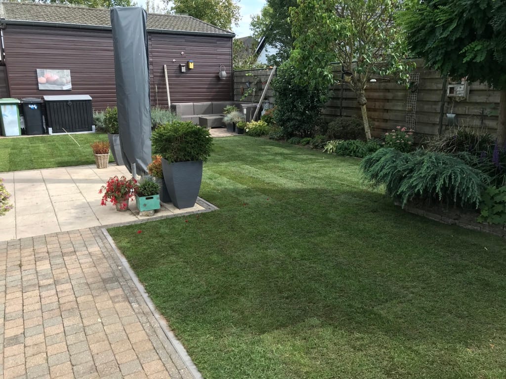 Voor deze klant hebben we het oude gazon dat helemaal vergaan was vervangen. We snijden eerst met een graszodensnijder het oude gras los zodat deze eenvoudig af te voeren is. Wanneer de grond helemaal zwart is maken we het los met een speciale freesmachine die goed op diepte is in te stellen. Uiteindelijk na veel noeste arbeid ligt er weer een mooi nieuw gazon van 120 vierkante meter.