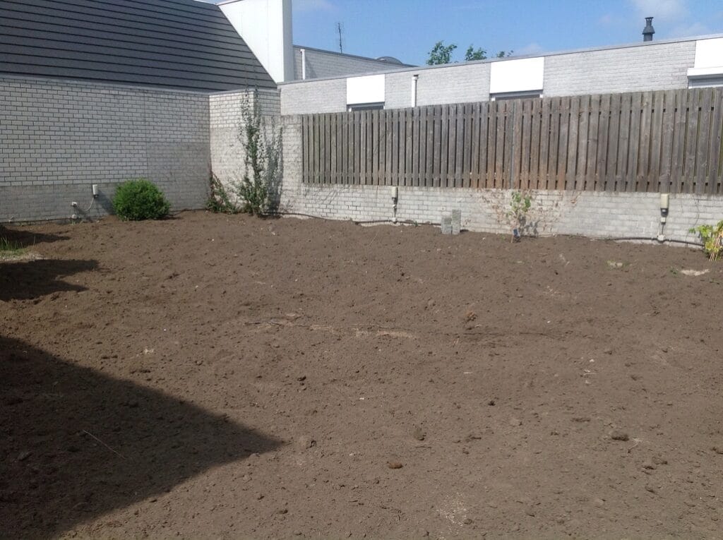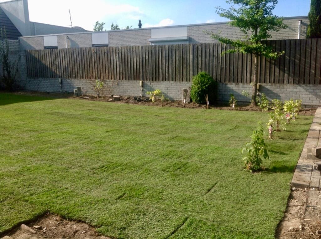 Na het frezen van de grond hebben we de grond goed kunnen egaliseren en 240 m2 graszoden aangelegd in Bladel.