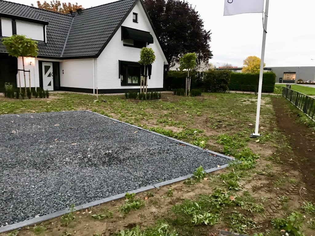 Helaas had de klant het oppervlak niet goed opgemeten waardoor we graszoden te kort kwamen. Wanneer dit voorkomt en we ook onvoldoende extra zoden mee hebben dan maken wij vaak het perceel verder klaar zodat de grond leg klaar is. We laten de graszoden die te weinig zijn dan een dag bijvoorbeeld een dag later naleveren zodat de klant ze alleen nog hoeft uit te rollen.