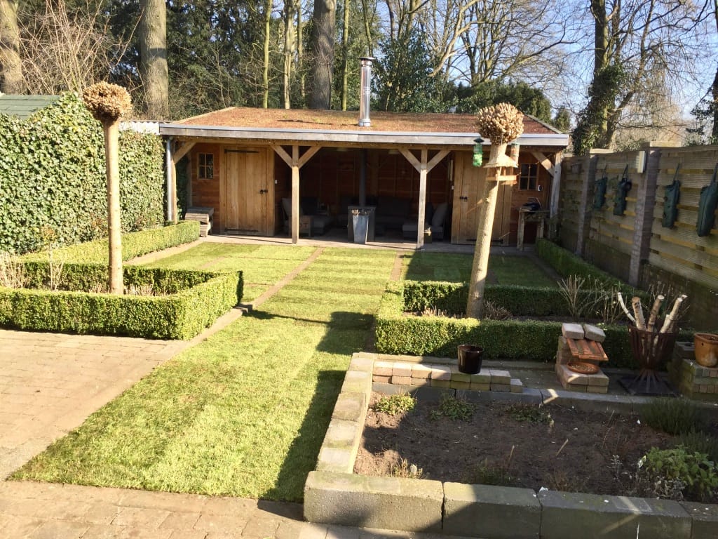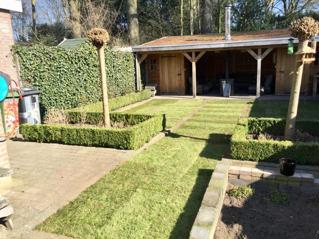 In Coevorden hebben we een leuke tuin aangelegd met strakke lijnen en vakjes. Vroeg in het voorjaar is een mooie periode om het gras aan te leggen. De zon is nog niet zo fel waardoor het gras niet snel uitdroogt en er weinig water gegeven hoeft te worden. De temperaturen stijgen echter wel gelijkmatig waardoor het gras wel vlot vast groeit.