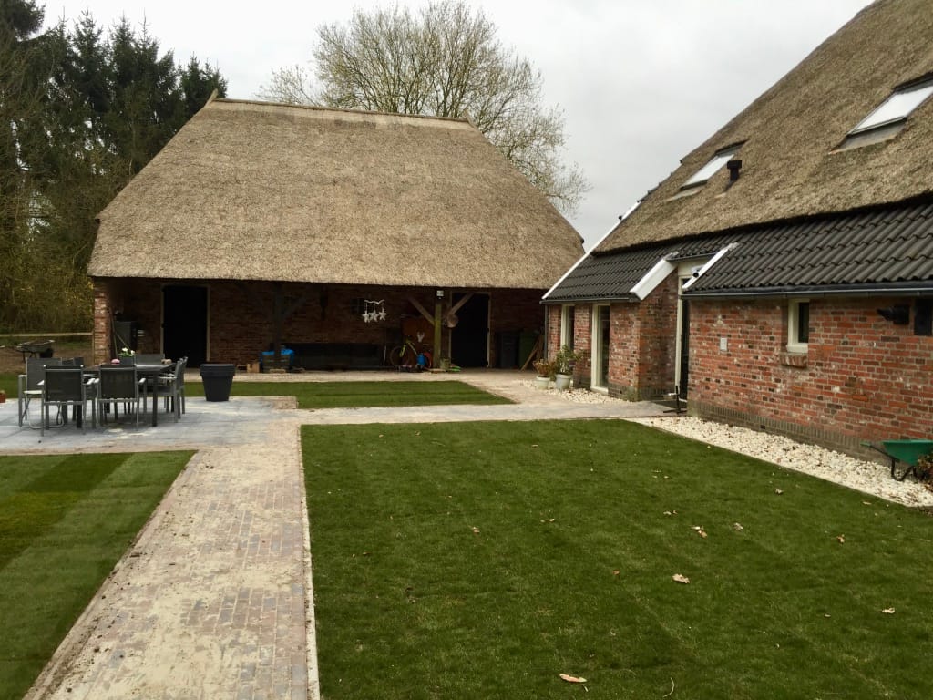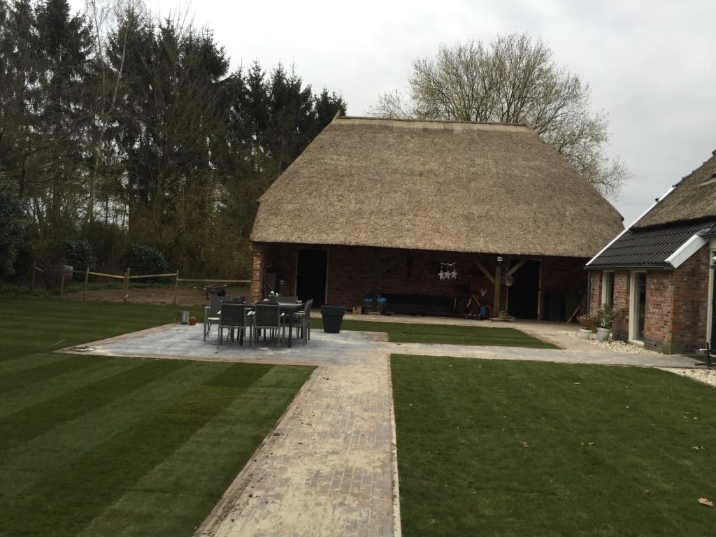 Na een wilde storm waarbij een grote boom was omgewaaid in de tuin in Drouwen was daar de perfecte gelegenheid om de tuin aan te pakken. Nadat er nieuw straatwerk was gelegd en mooie bloembakken waren gemaakt mochten wij het geheel af maken met mooie groene graszoden.