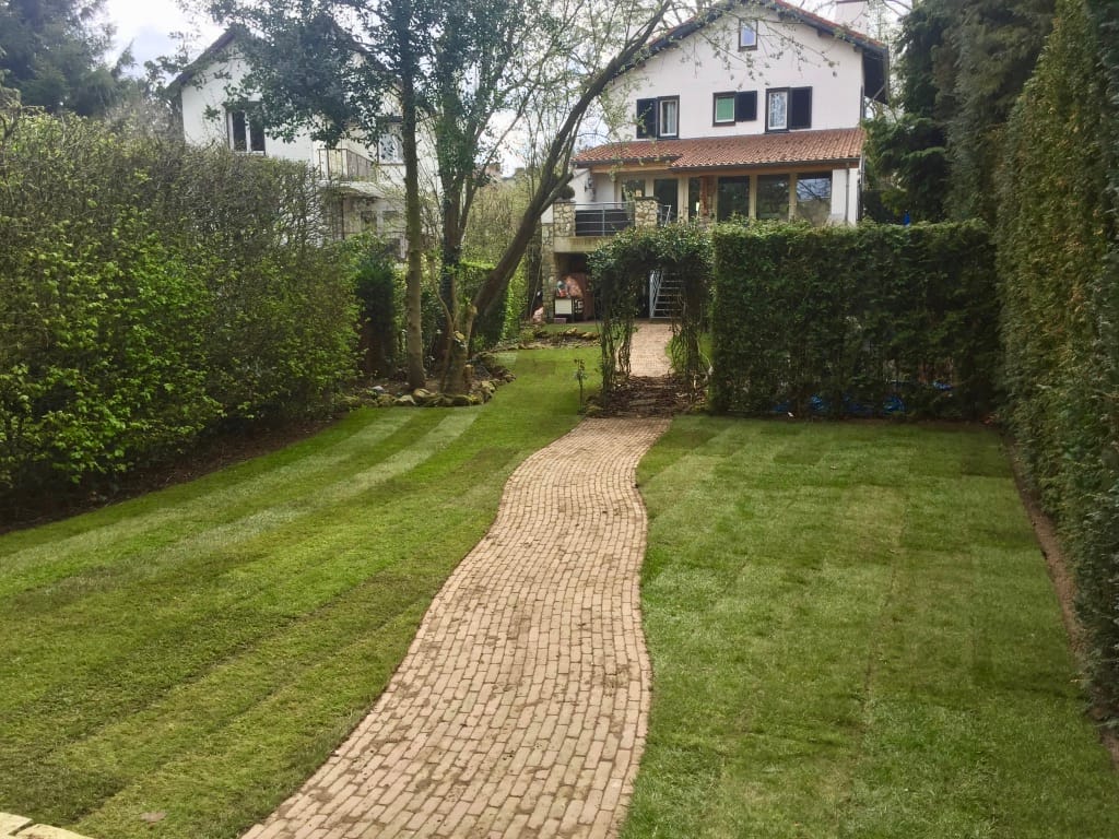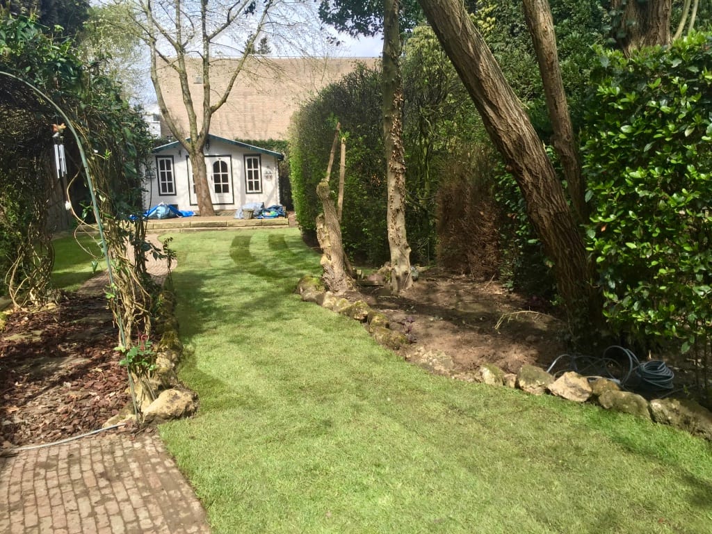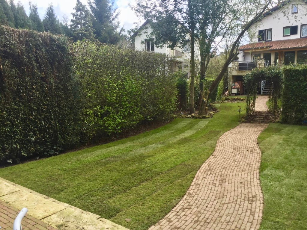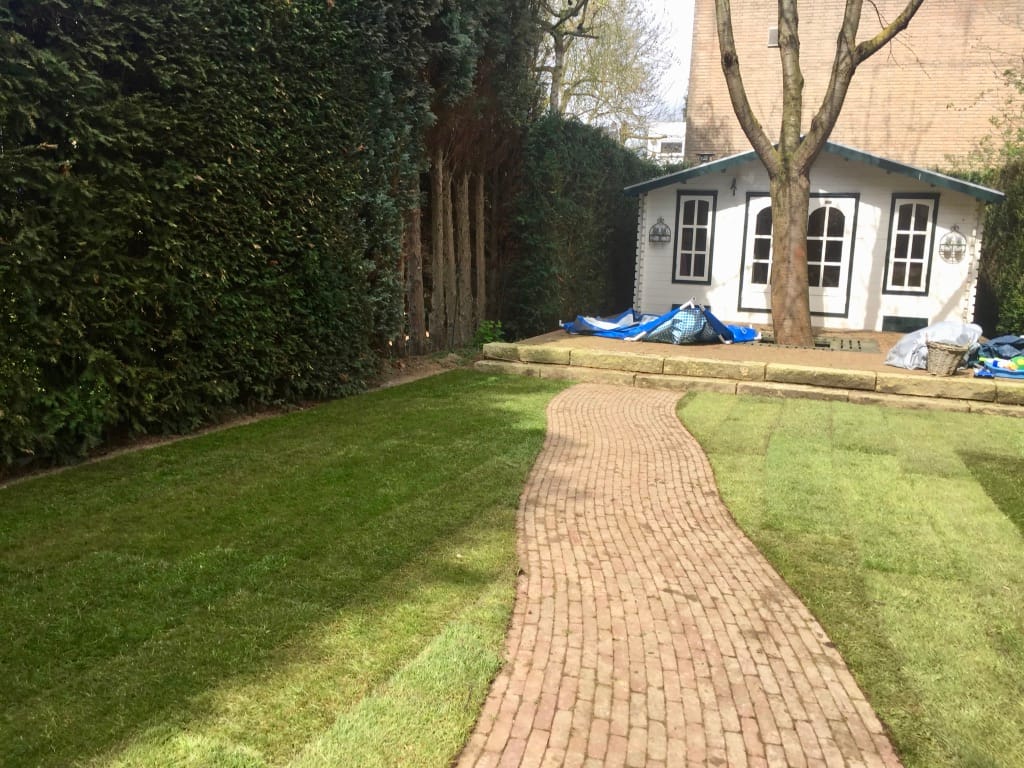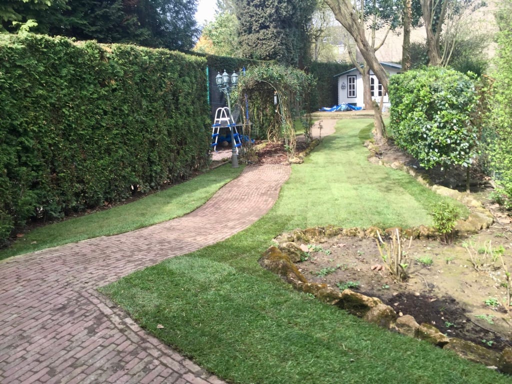 In Geleen hebben we een langwerpige gazon verwijdert. De tuin heeft een behoorlijk hoogte verschil met het straatniveau aan de voorkant van de woning, ca 4 m1. Dit houdt in dat we met half gevulde kruiwagens het oude gras moesten afvoeren en hetzelfde met het aanvoeren van de nieuwe graszoden. Na flinke arbeid mag het resultaat er echter zeker zijn en kan de klant gaan genieten van een prachtig gazon!