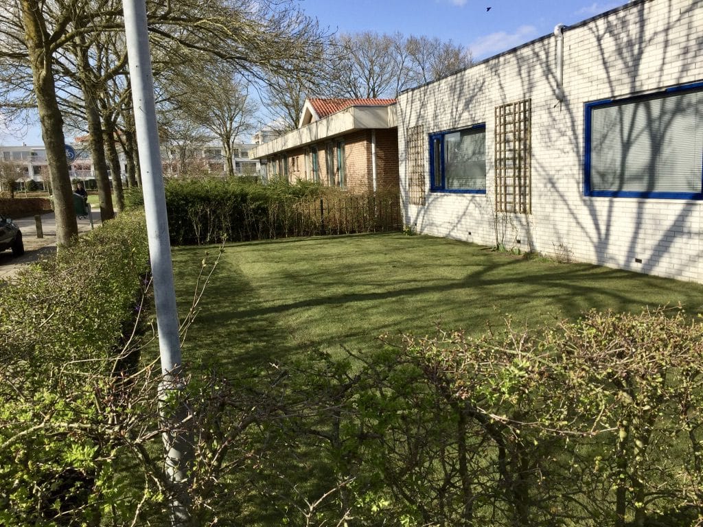 Voor een huisartsenpraktijk in Zwolle hebben we de tuin opgeschoond en graszoden aangelegd. Een gazon vergt relatief weinig onderhoud wanneer u het goed bemest, regelmatig maait en in droge periodes goed water geeft kan u er jaren lang plezier van hebben.
