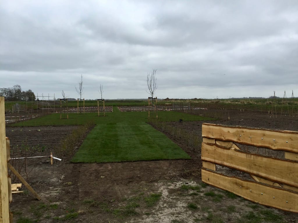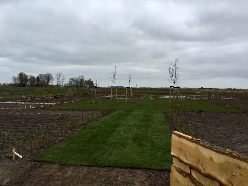 Voor een moestuin vereniging hebben we voor de nieuwe aanleg van de moestuin een grasveld met paden aangelegd. De graszoden zorgen voor een natuurlijke toegang tot de verschillende moestuinen.