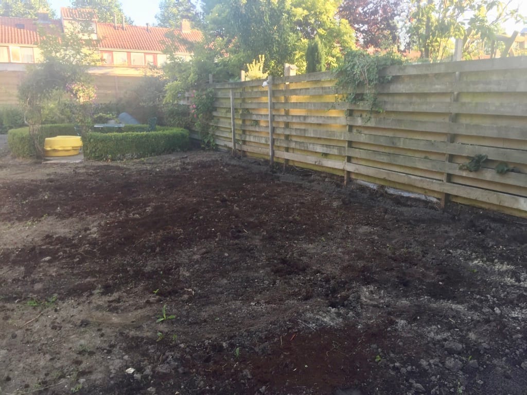 In deze tuin in Middenmeer hebben we grondlaag gefreesd voordat we deze konden bewerken. Het frezen zorgt er voor dat de grond los en rul wordt en het bodemleven wordt gestimuleerd. Om de grond te kunnen egaliseren hebben we ook een laagje van losse grond nodig. Wanneer met een traditionele freesmachine de grond diep omgehaald is dan dient de grond daarna goed aangedrukt te worden om verzakkingen in de toekomst te voorkomen. Dit is een bewerkelijkere methode dan wij gebruiken met een speciale frees die niet alleen de grond los haalt maar ook de grond egaliseert en aandrukt.