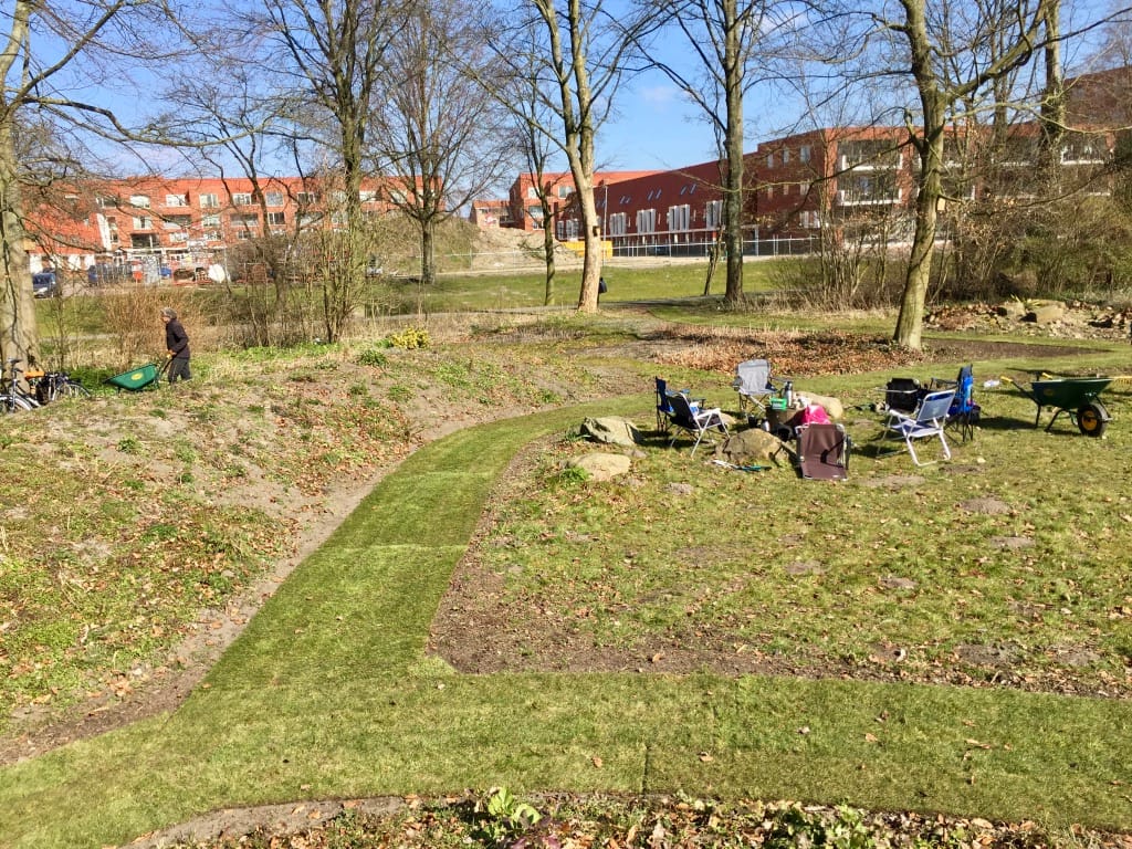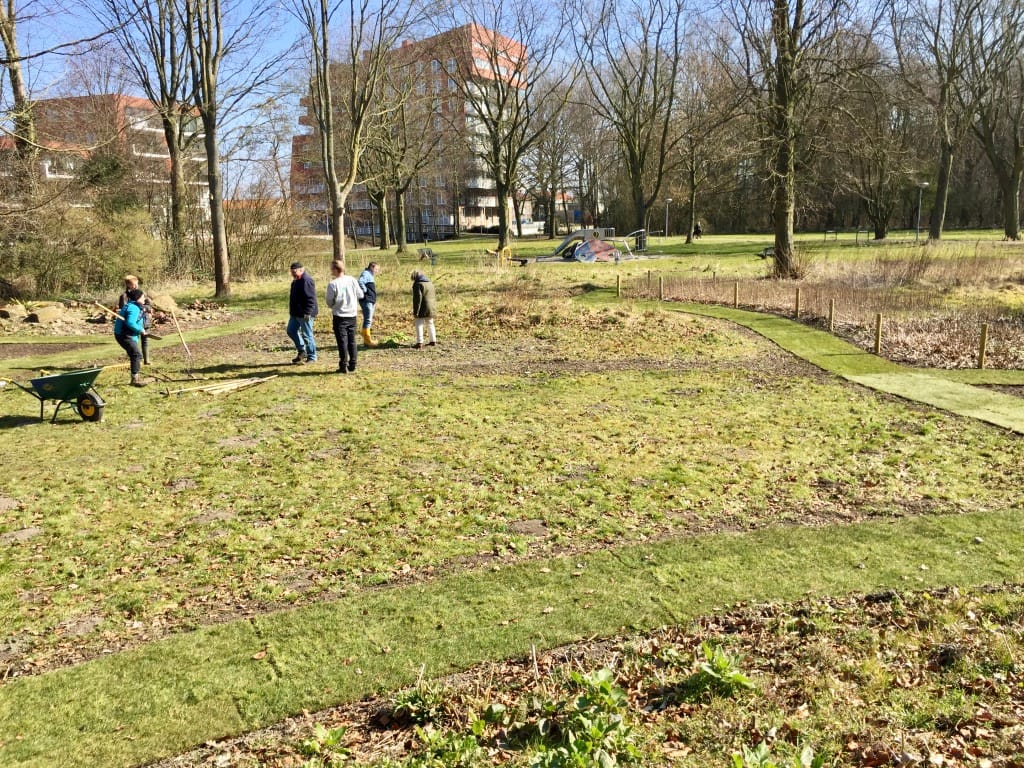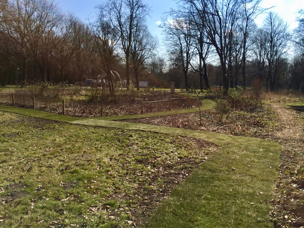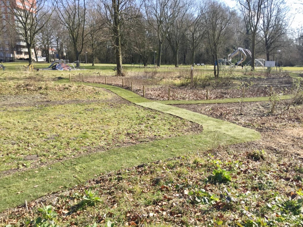 Voor een stichting die de renovatie en onderhoud van een park in Oosterhout in haar portefeuille heeft hebben we paden van graszoden aangelegd om door het park te lopen. Het is nog vroeg in het voorjaar waardoor het park er verder kaal uit ziet maar wanneer de temperatuur omhoog gaat zal alles gaan groeien en bloeien en krijg je een heel natuurlijk effect in het park.