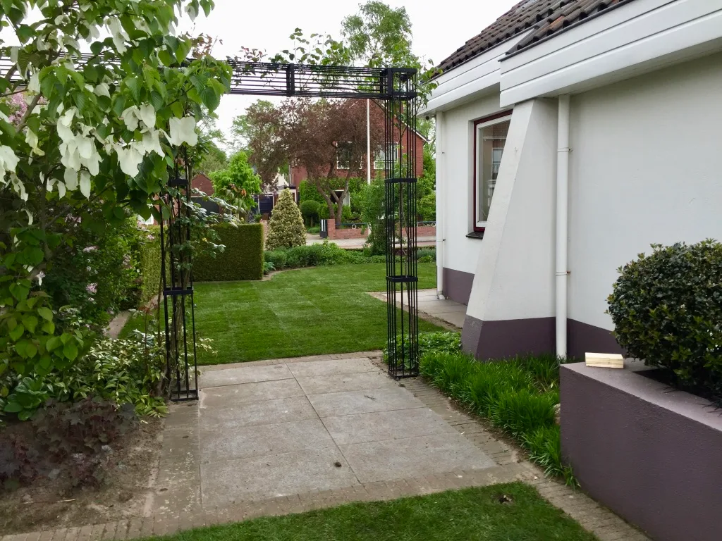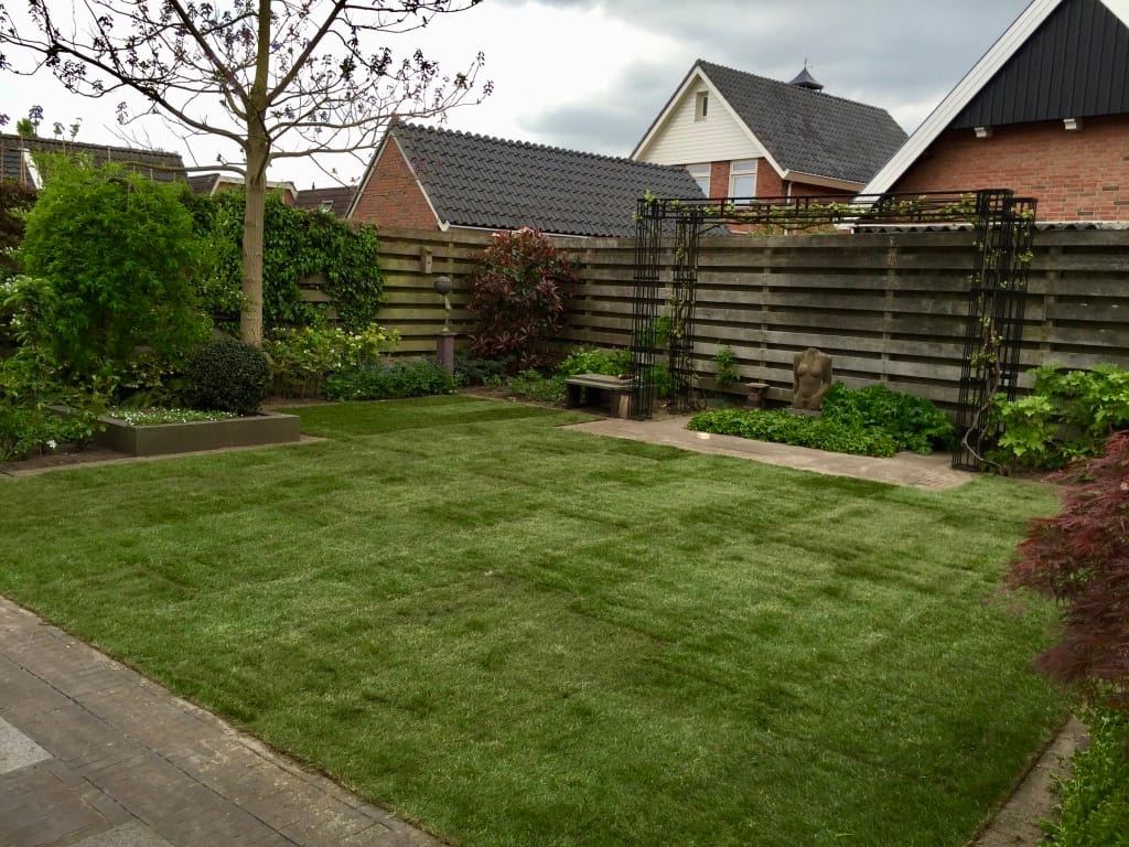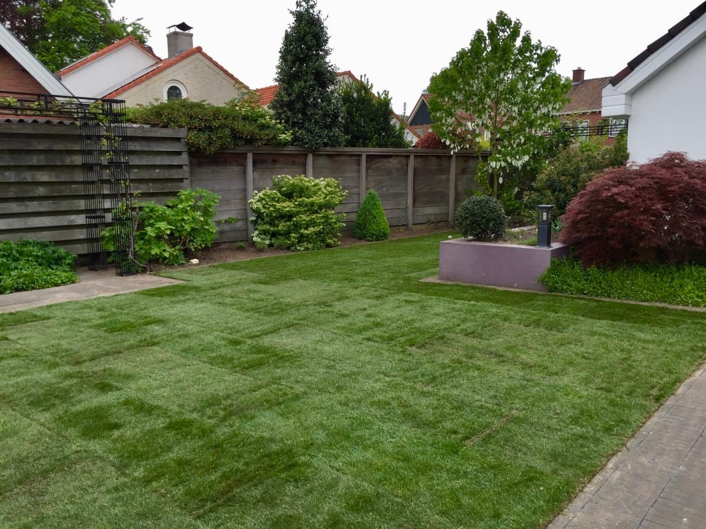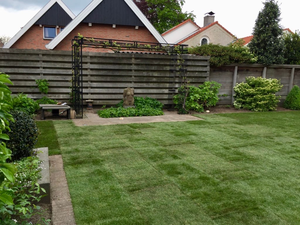 In Rijssen hebben we een oud gazon verwijdert van 105 m2 en tijdens de aanleg het draadje van de robotmaaier terug geplaatst. Het aanleggen van het draadje van de robotmaaier kan vaak eenvoudig na aanleg van de graszoden. Door het draadje onder de graszoden te leggen is het draadje minder kwetsbaar en kan je ook gewoon verticuteren. Na de aanleg van het gras kan je de zode open slaan en het draadje er onderdoor trekken.
