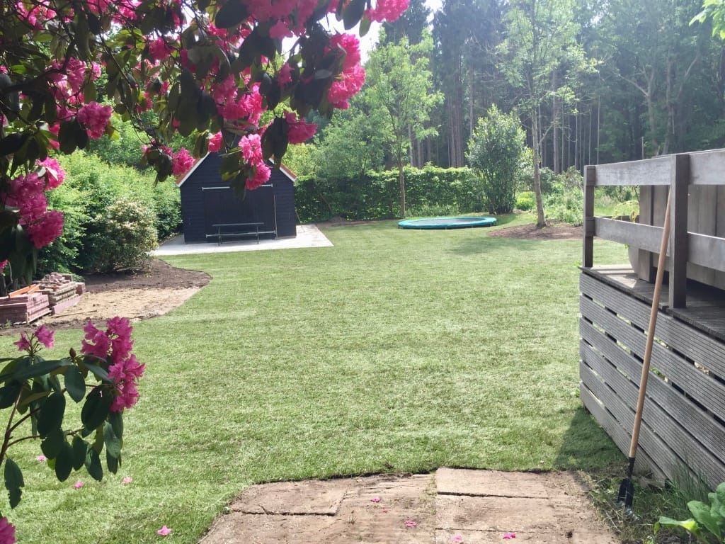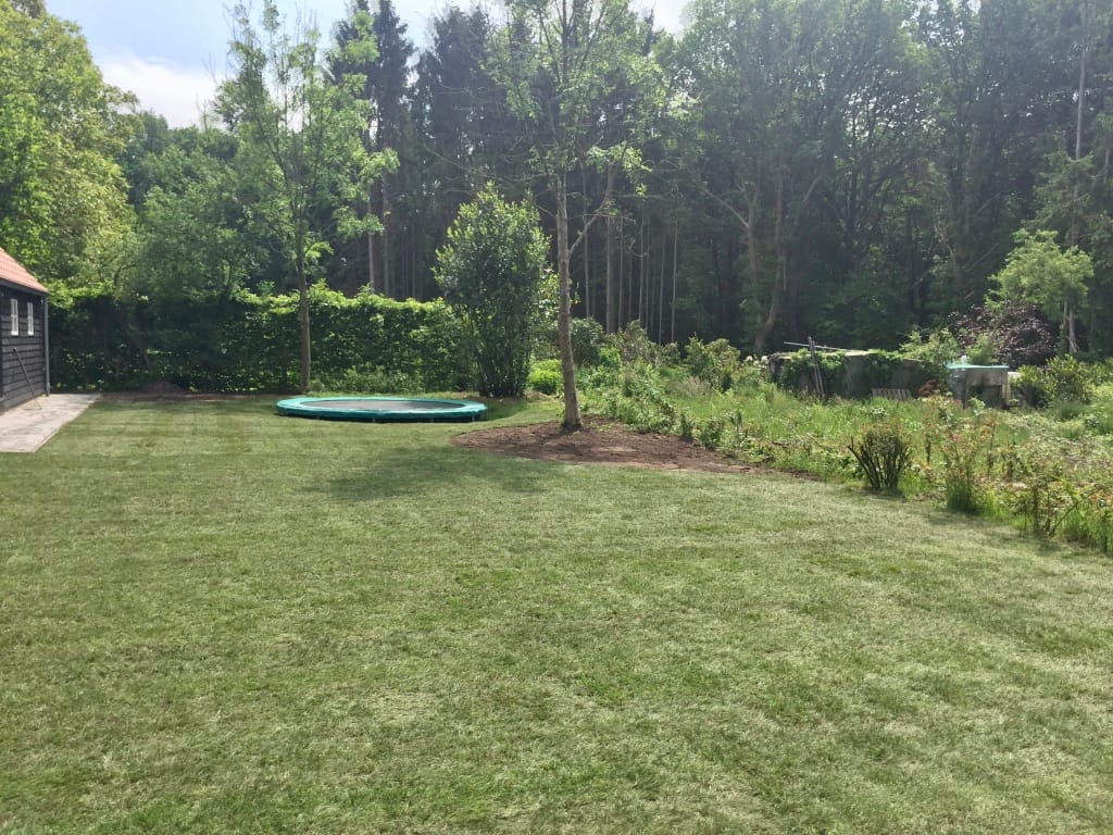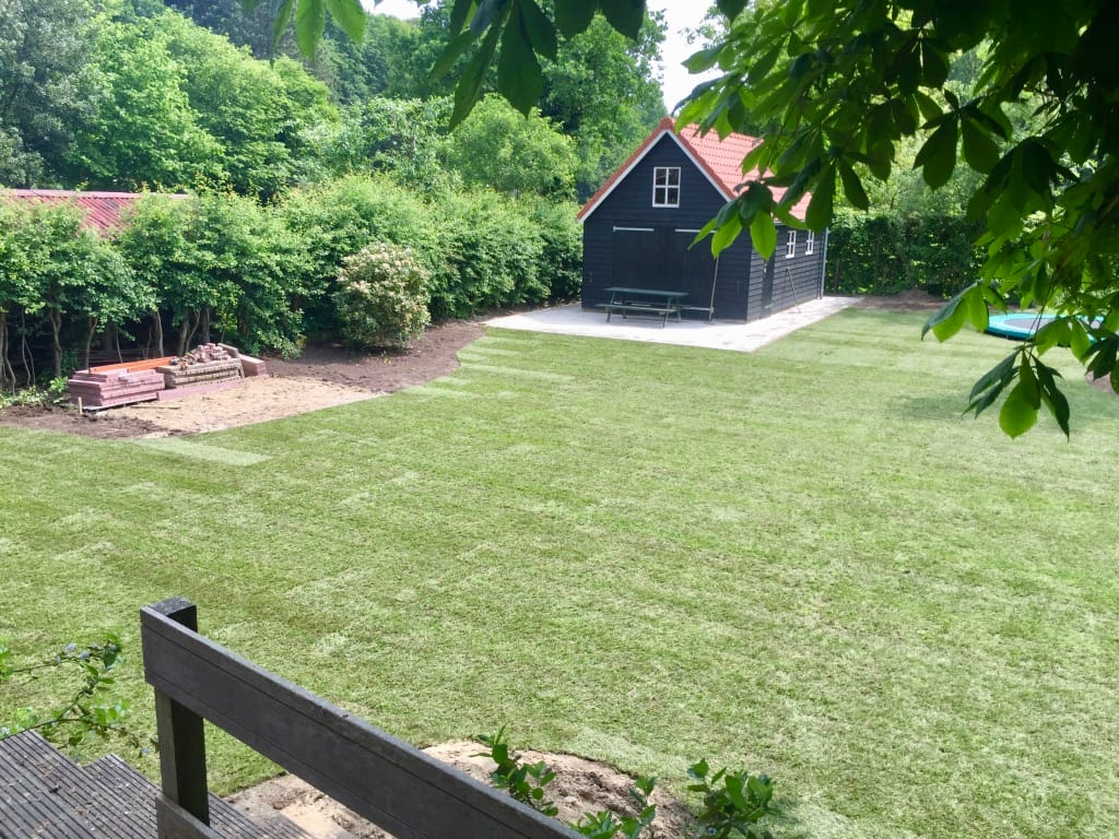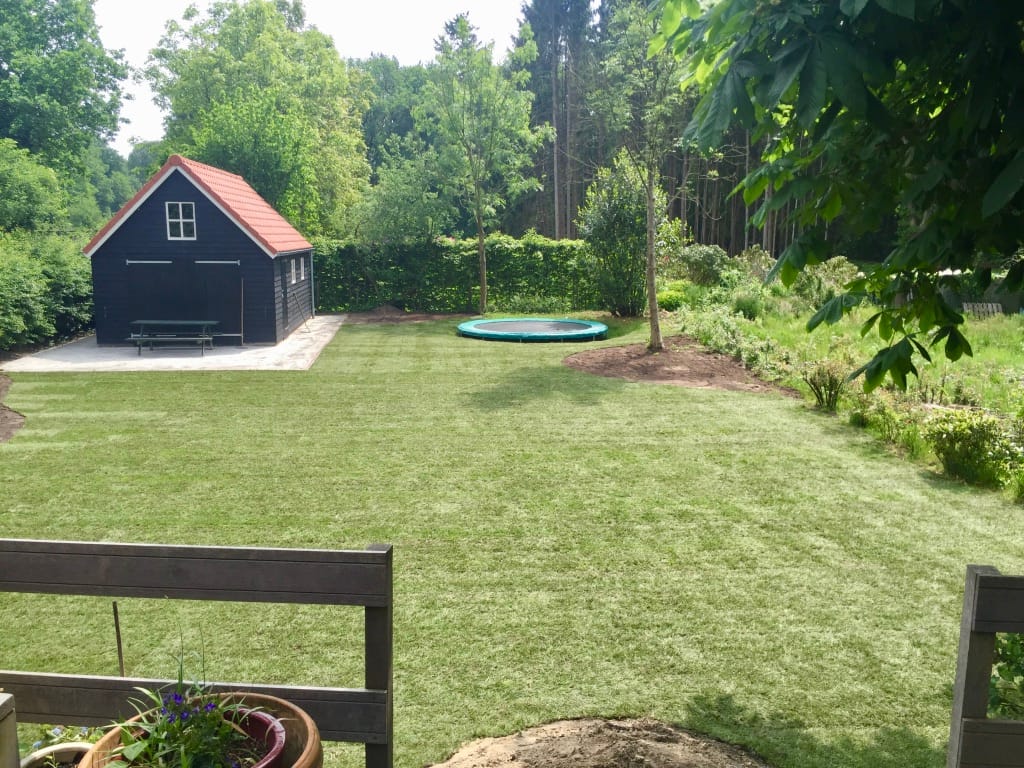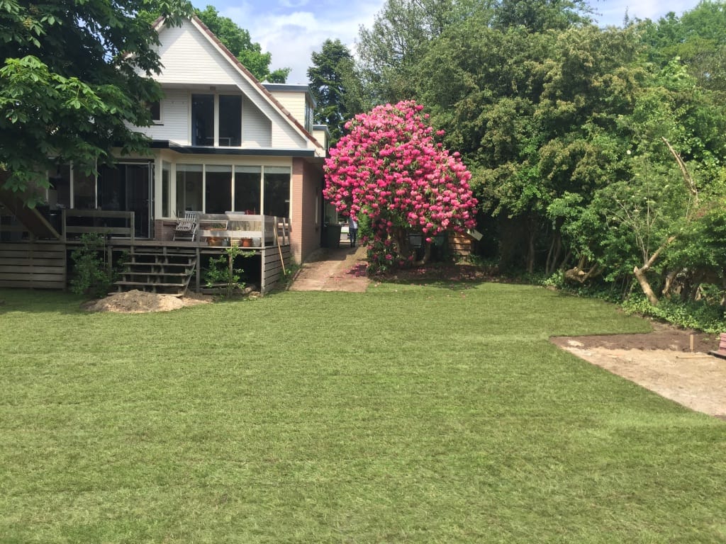 Voor een hoveniersbedrijf hebben we bij een klant in Rolde het gazon aangelegd. Het gaat om een behoorlijk diepe tuin die op een speelse manier met verschillende rondingen is aangelegd. Met het groeizame weer kan het gras binnen twee weken intensief betreden worden.